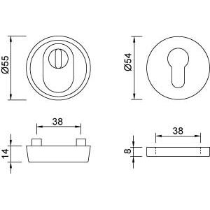 CJTO.ROSETAS SEG. PZ ZA 14MM. 67-72MM INOX MATE